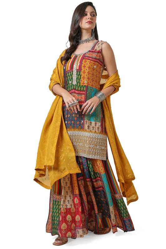 • Package Contains: 1 Kurta With Unstitched Sleeves, 1 Sharara, 1 Dupatta